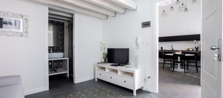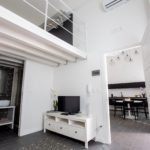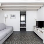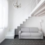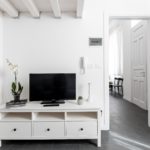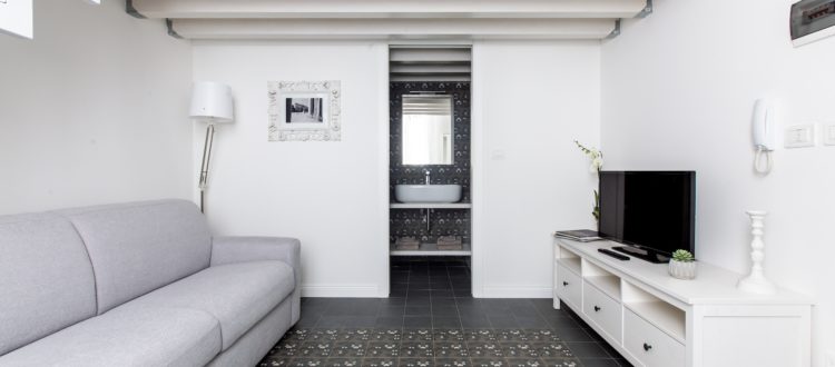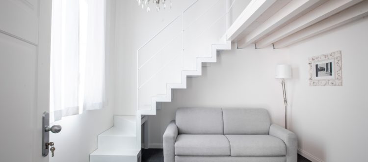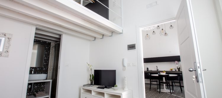 Situata al piano terra Biancomangiare può ospitare fino a quattro ospiti. La camera è infatti composta da una zona living, dotata di un divano letto matrimoniale, e un soppalco dove è situata la zona notte. Al bagno privato si accede dalla zona living.